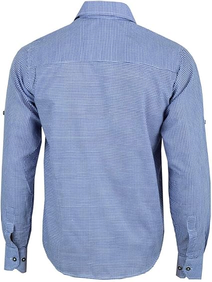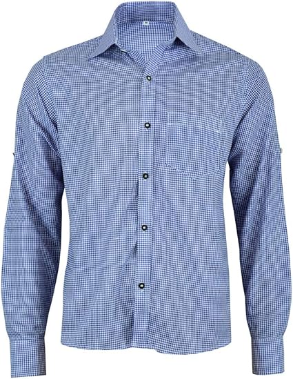 Mens Bavarian Classic Style Lederhosen Longsleeves Blue Checked Shirts