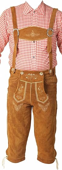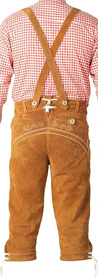 FAIZI FASHION Mens Bavarian Lederhosen Cowhide Leather with Matching Suspenders Short