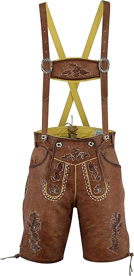 FAIZI FASHION Mens Bavarian Lederhosen with Matching Suspenders Cowhide Leather