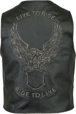 MENS Black LEATHER WAISTCOAT/Biker Vest Eagle EMBOSE LIVE TO RIDE