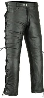 New Cowhide Leather Laced Motorbike Trousers Disco Motorcycle Jeans Cruiser Pant