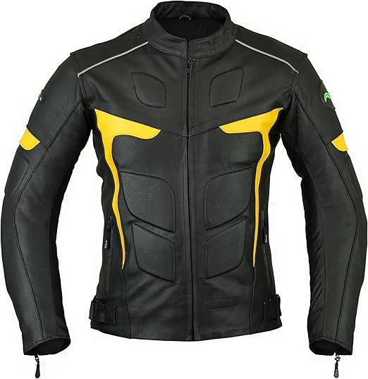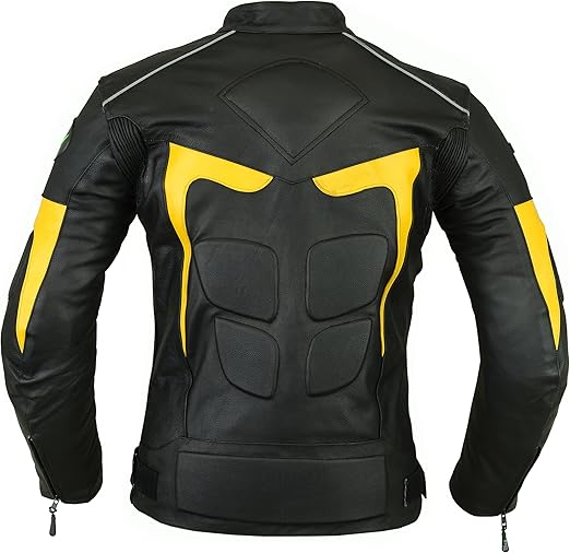 - Black and Yellow in color.Rubber padding at front side, back side and at sleeves