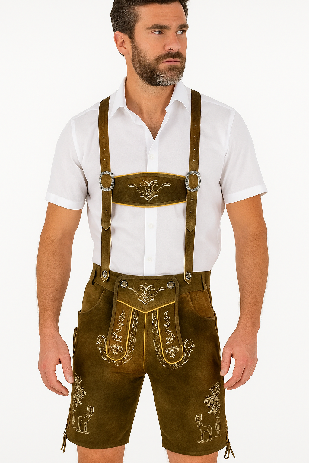 RIDEX Men’s Bavarian Leather Lederhosen + Suspenders – Short