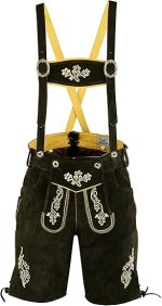 FAIZI FASHION Mens Bavarian Lederhosen with Matching Suspenders Cowhide Leather