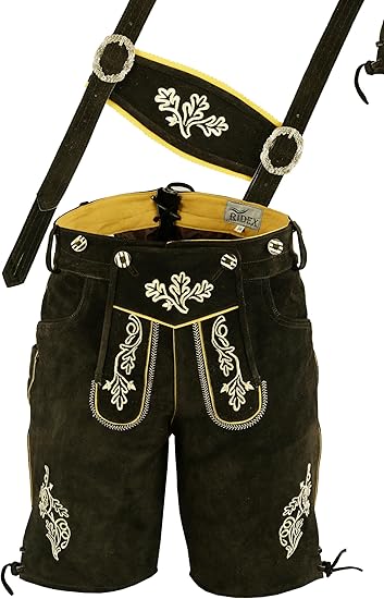 RIDEX Oktoberfest Mens Bavarian Leather Lederhosen Short + Matching Suspenders