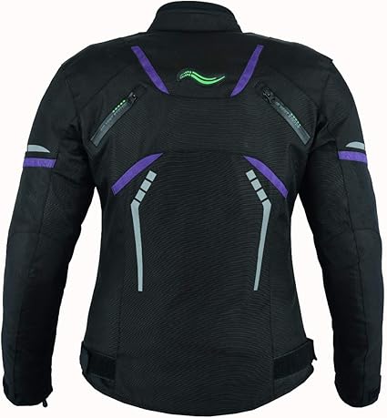 It’s Waterproof and Windproof. CE Approved Removable Armour at Elbow, Shoulders and Back Side. 3M Scotchtlite Reflective Material used that make more and better road Visibility. Black and purple in Colour. Inside Removable Thermal Lining. So Better for All Weather. Velcro Fastening and YKK Zips To The Front. 2 Front Pockets Fastening Zipper. Waist Adjuster For Better Fitting. Inside Fixed 190 T polyester liner for waterproof. Connection Zipper Attached for Trouser. Very Durable, Stylish and Fashionable . Quality Craftsmanship.